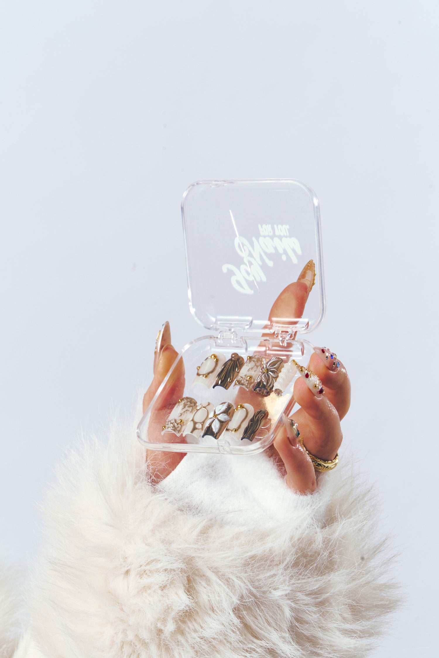 Handgefertigte, wiederverwendbare Kunstnägel aus hochwertigem Soft Gel statt Plastik – stabil, flexibel und optisch wie eine professionelle Modellage. Der Unterschied: Du kannst sie ganz einfach selbst anbringen, egal wo du bist, und das in weniger als 10 Minuten.