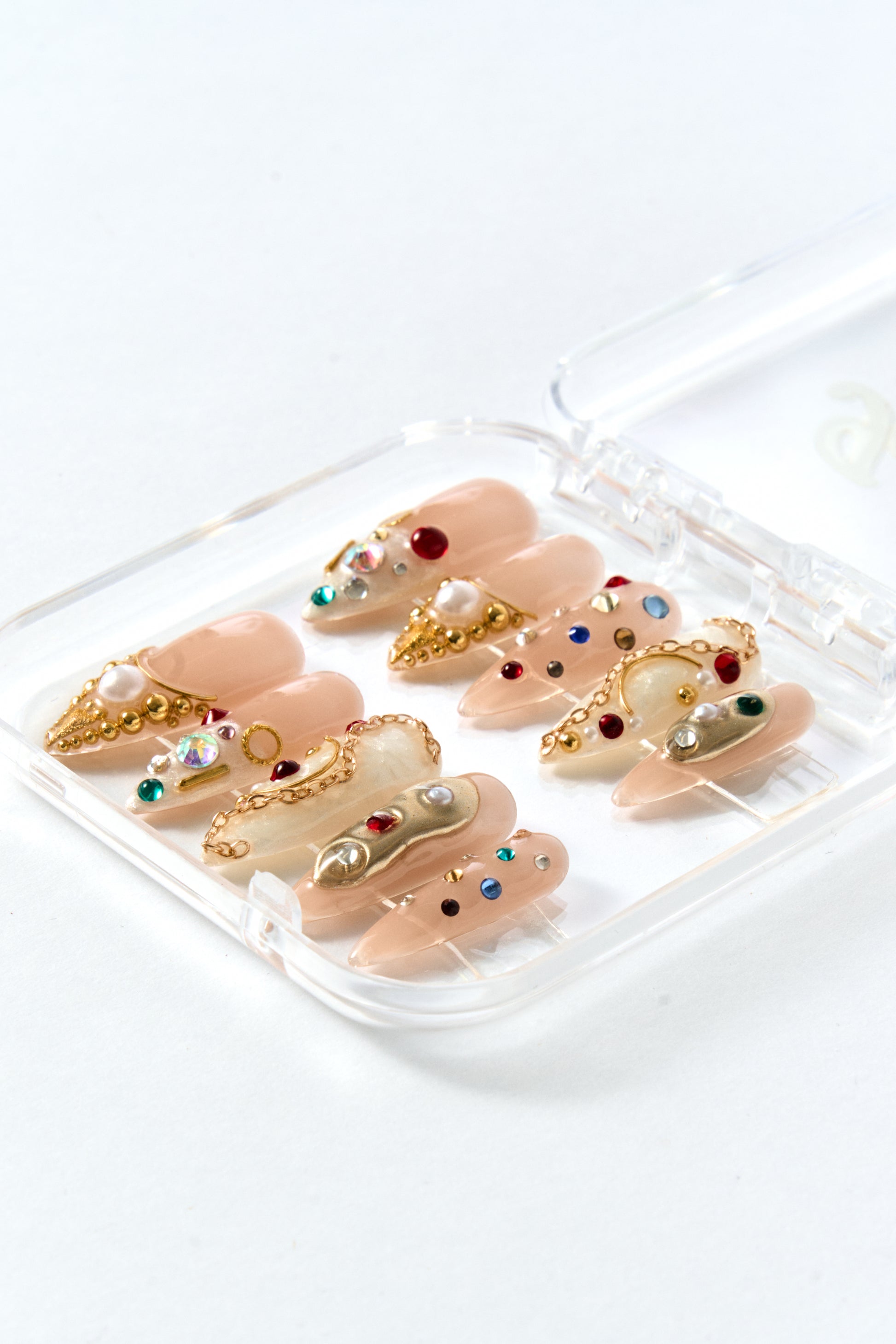 Handgefertigte, wiederverwendbare Kunstnägel aus hochwertigem Soft Gel statt Plastik – stabil, flexibel und optisch wie eine professionelle Modellage. Der Unterschied: Du kannst sie ganz einfach selbst anbringen, egal wo du bist, und das in weniger als 10 Minuten.